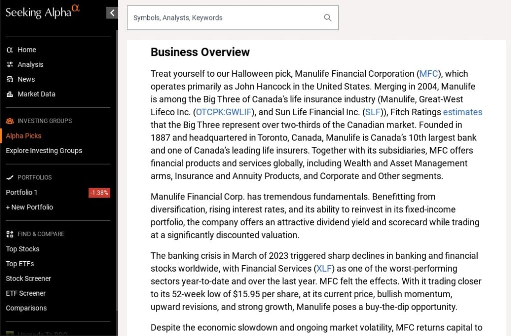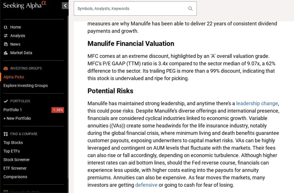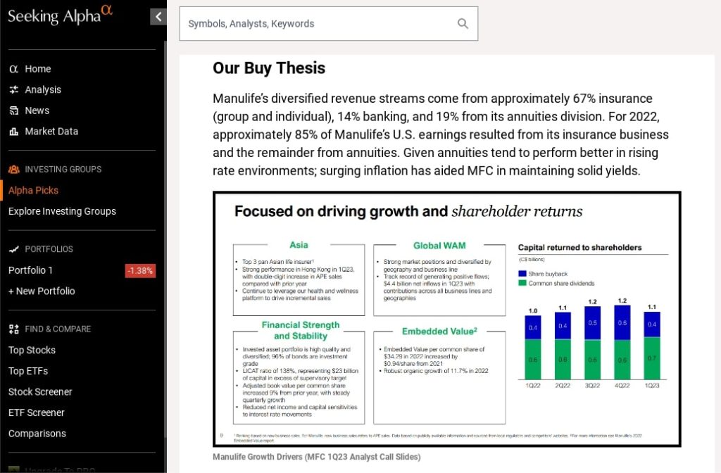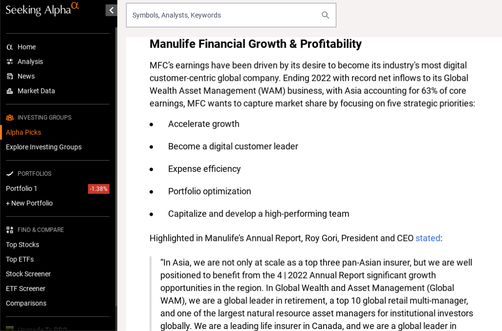 One of Alpha Picks’ recent stock picks is Manulife Financial Corporation.