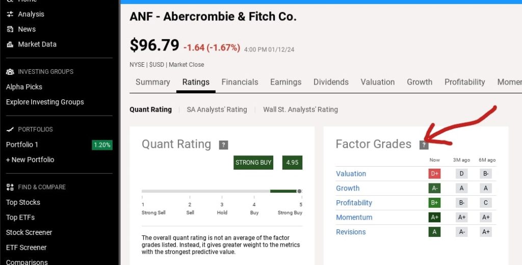 Although the Factor Grade for “Valuation” is D, its Quant Rating is still “Strong Buy” because the weighting assigned to each Factor Grade in the Quant Rating is different.