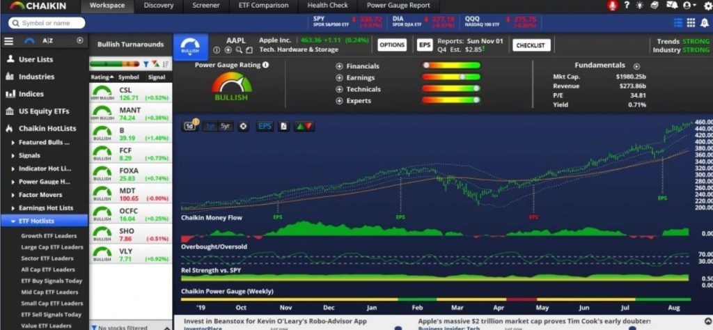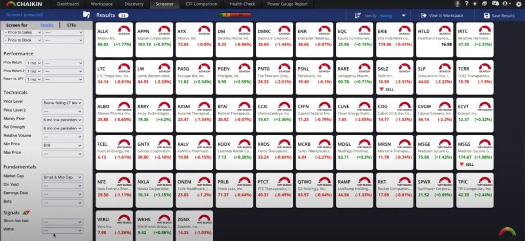 If you are looking for stocks or ETFs to buy, you can use the screener or “Chaikin HotLists” to find potential investment ideas.
