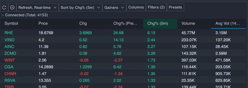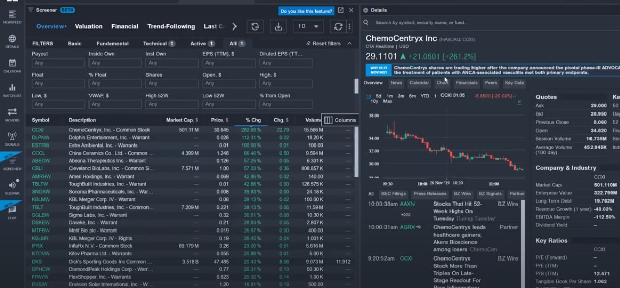 Below is the stock screener inside Benzinga Pro.