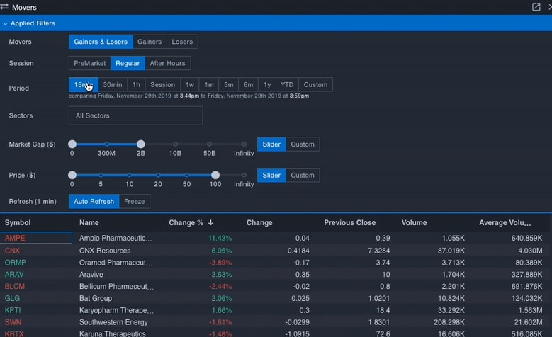 Also, the Benzinga Pro Movers tool gives you an up-to-the-minute feed of the biggest gainers and losers in the stock market.