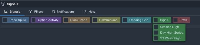 Next, you can use the Benzinga Pro Signals tool that alerts you to price or volume-related events in real-time such as Price Spikes, Block trades, Trading halts, Option activities, Opening gaps, and High/Low.