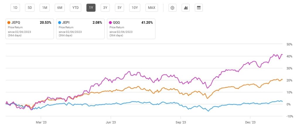 JEPQ started in May 2022, so the comparison between JEPI and JEPQ in terms of performance will not be very meaningful.