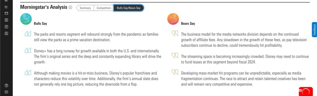 Morningstar also has a tool called “Bulls Say Bear Say,” where I can understand the perspectives of investors who are pessimistic about this stock.