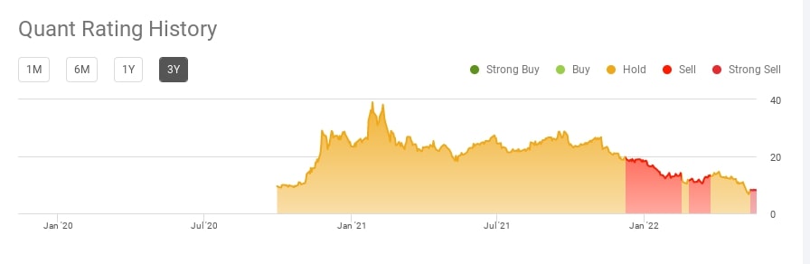 Seeking Alpha’s quantitative analysis, indicated by “Quant Rating”, is an objective, unemotional evaluation of each stock based on data.