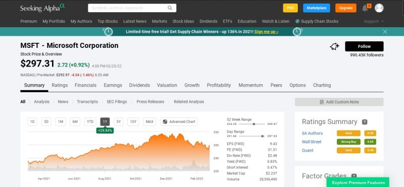 Also, you can get “Valuation” and “Future Growth” data from many other stock research and analysis platforms such as “Stock Rover“, “Seeking Alpha” and “Morningstar“.