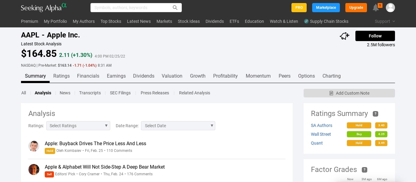 It helps you get a better understanding of any stock with its stock ratings (i.e. Quant ratings, Author ratings, and Wall Street ratings), in-depth stock analysis as well as comprehensive financial and fundamental data.