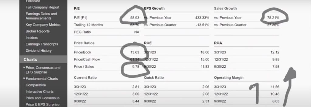 Although the PE ratio, PB ratio, and PS ratio are very high, he is comfortable with it because of the high growth rate.