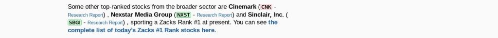 As of 11th Oct 2023, Sinclair is currently rated a “Strong Sell” according to Zacks Rank.