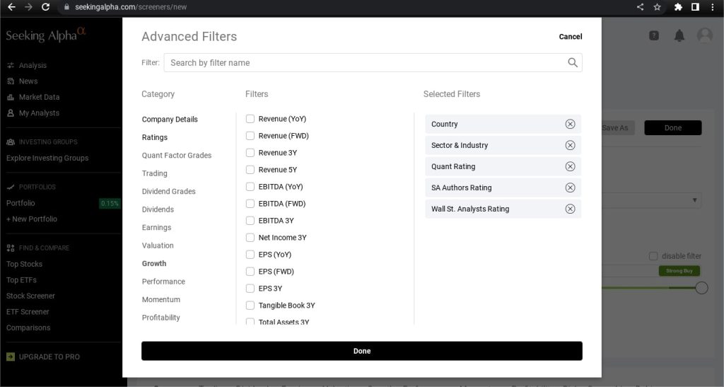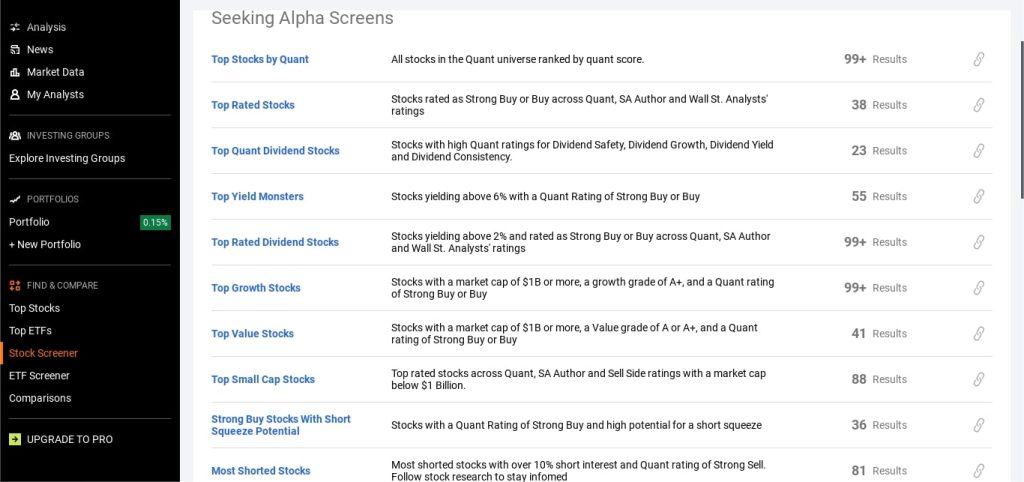Now, what about the Seeking Alpha stock screener?