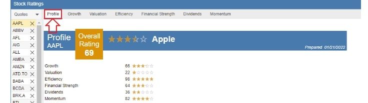 Next, let’s look at Stock Rover Stock Ratings.