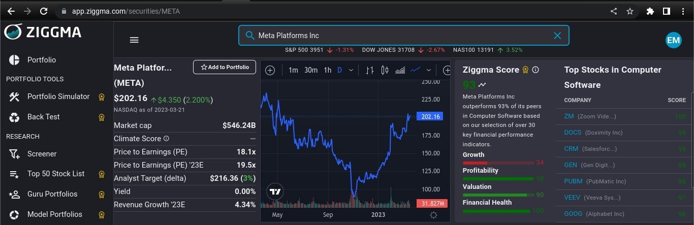 Below is the breakdown of the Ziggma Score for META (formerly Facebook).